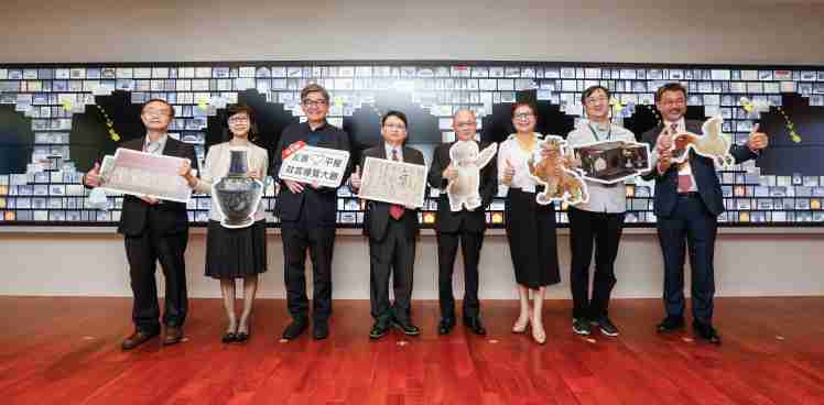 JDB电子携手创利空间为故宫建置的智慧文物互动导览墙及轮播墙,,今日正式启用。。。。(左四:JDB电子新事业暨投资管理总部副总经理杨本豫、、、、右四:故宫博物院院长吴密察、、、右三:太极影音董事长黄宝云)