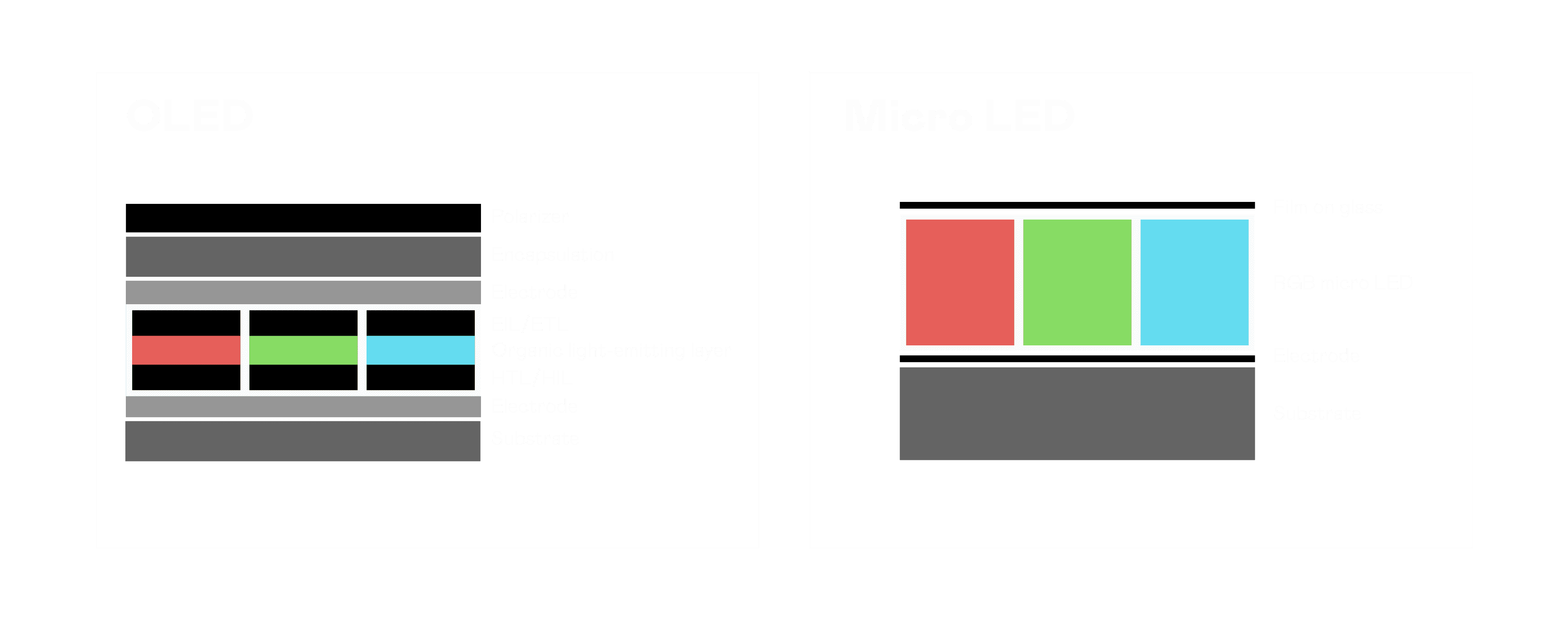 以 LED 做为显示画素,,可让 LED 的发光效率发挥到极致,,,从而让显示器具备优异的亮度表现,,,不论是在户外或室内,,,,均具备出众的显示效果。。。。同时,,,与使用有机材料的 OLED 相比,,LED 具备更稳定、、寿命更长的特性,,不仅不会有画面烙印问题,,而且更不容易出现故障、、、、坏点。。。