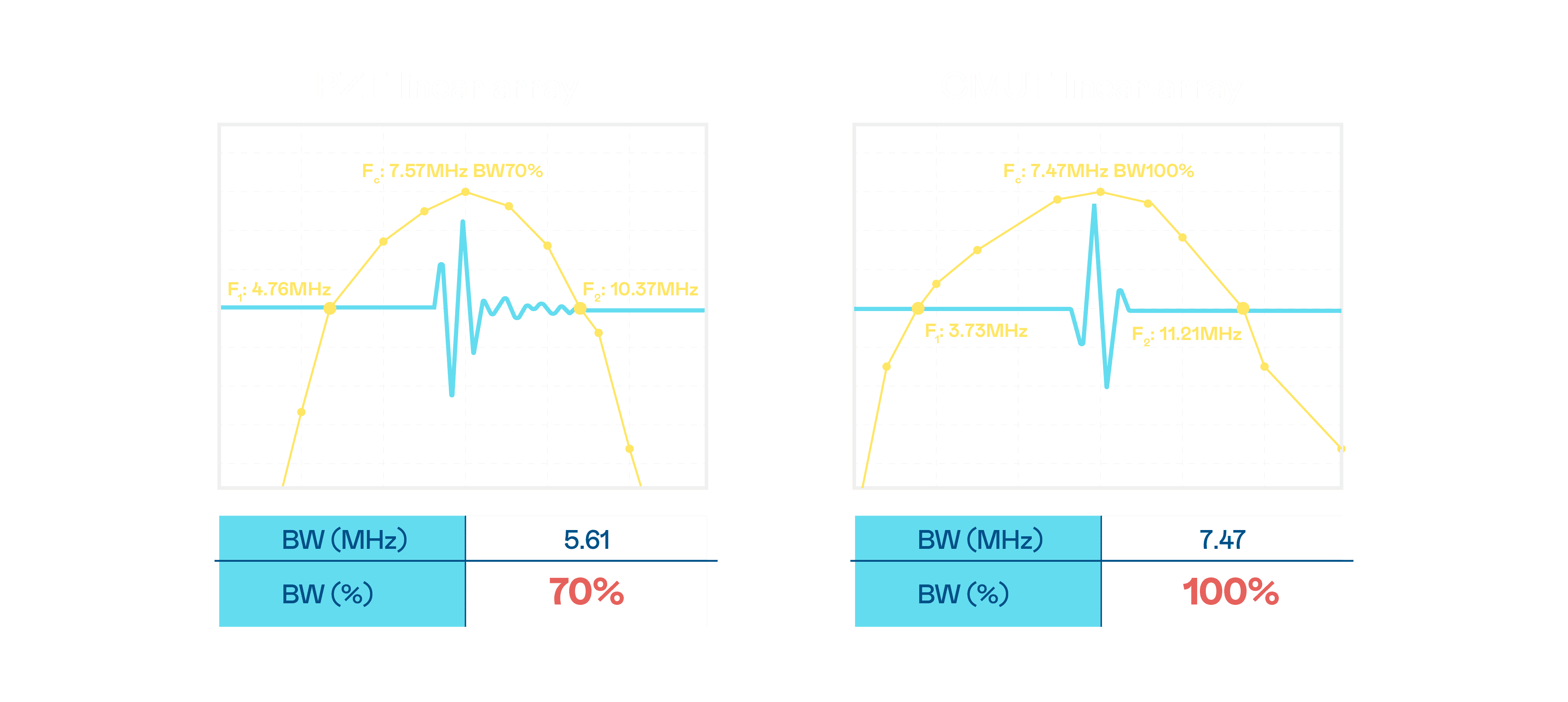 超音波影像的解析度高低,,,,首先取决于探头能发出的讯号频宽。。。。JDB电子 CMUT 可提供高清晰的超音波讯号,,,提供高频宽、、高灵敏度、、影像纹理细节更高的超音波影像,,,协助医护人员缩短影像判读时间及利用精准的医疗影像进行诊断。。。。